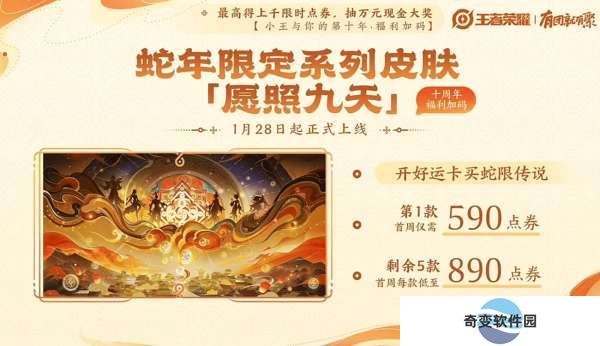 继小王免费赠送九周年庆限定传说皮肤桑启鸣野蒿后,借助蛇年新春机会,又给大家带来了一款全新的免费传说皮肤,云缨的幻光神枪,通过限时点券购买,这也是首款免费限时点券传说皮肤,不得不说这是一次很给力的限时点券活动。