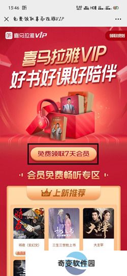 喜马拉雅FM是目前很多合作伙伴都在使用的一个音频平台,升级为会员后,用户可以收听更多高质量的内容。喜马拉雅也是很多人用来消磨时间的软件,但有些内容可能需要成员收听,通过收音机收听各种节目,很多用户除了续订会员之外,其实还有免费会员可以接收,也就是使用万能兑换码,下面是分享喜马拉雅会员兑换码免费领取的方法,有需要的可以查看。1.打开喜玛拉雅的FMAPP,登录账号后,点击“首页-推荐”页面中间的横幅【新手免费VIP】;2.点击中间的【一键领取】按钮获得7天免费听力VIP会员,收到后第一周收听90分钟,然后续订7天VIP会员;3.返回首页,进入[Account]页面。查看顶部昵称下方是否显示“VIP”徽章。4.我们还可以通过喜马拉雅微信官方账号获得7天会员资格,并关注喜马拉雅VIP微信官方账号。5.点击下面的“福利”进入会员收集页面;6.点击【免费7天会员】,然后输入手机号码接收短信验证码,即可再次获得7天免费会员资格,也可获得之前新免费VIP的手机号码。7.最后,登录7天活动,打开【账号】页面,点击右上角【积分】即可获得7天免费VIP会员