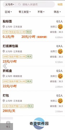 1、您可以根据区域和零工类型进行排序,根据自身需求找到合适的零工。