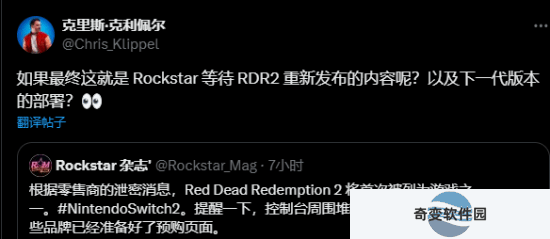 Chris Klippel还猜测,或许R星正等着NS2公布,有可能会同步公开《荒野大镖客2》PS5和Xbox Series X|S等新平台的强化版。