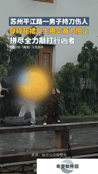今年9月11日,江苏苏州市平江路发生一起持刀伤人事件,女孩刘杨奋力用雨伞打掉行凶者手上的刀,成功制止其继续行凶。
