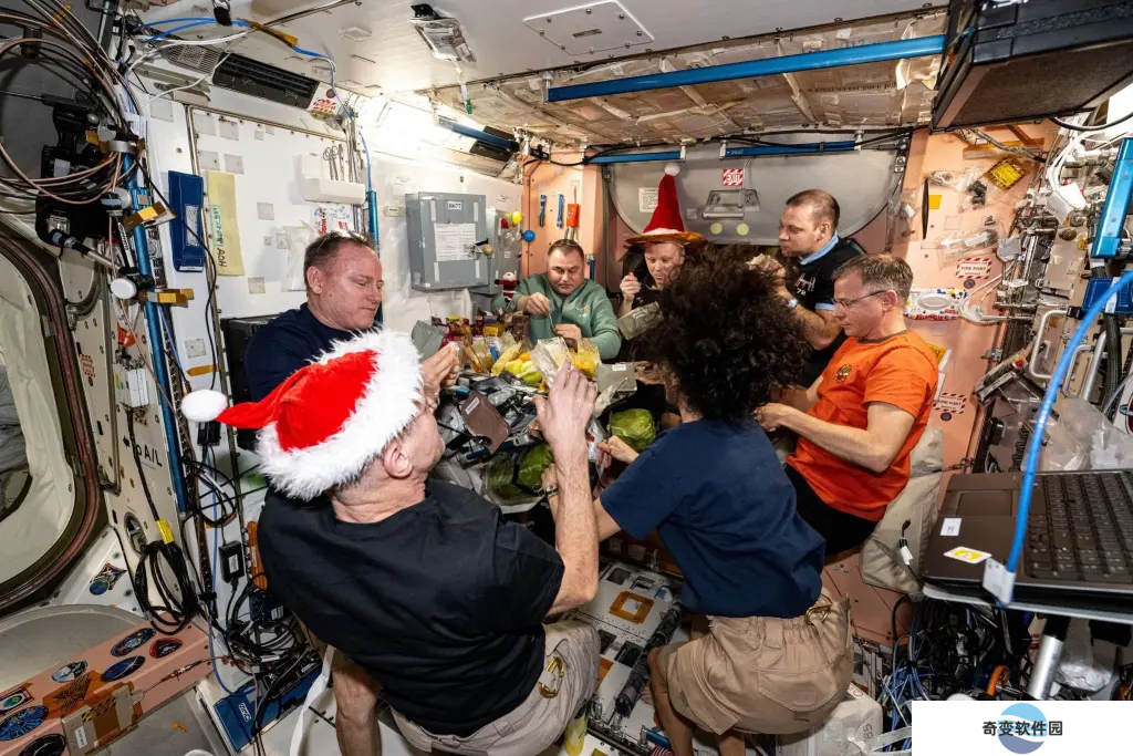 本站注意到,NASA 在 Instagram 上分享了一张照片,照片中,威廉姆斯与另一位宇航员唐・佩蒂特头戴红色圣诞帽,在 ISS 的哥伦布实验舱内通过业余无线电进行通讯,洋溢着节日气氛。配文写道:“又是一天,又一趟雪橇。”在一段视频中,威廉姆斯向地球上的人们送上了节日祝福:“欢迎来到国际空间站,我们正在为圣诞假期做准备。在这里感觉很棒,我们和国际空间站上的‘家人’一起度过。我们七个人会一起享受这段时光。”她还表示,她最喜欢圣诞节的是准备的过程,以及大家聚在一起为节日做准备的期待感。