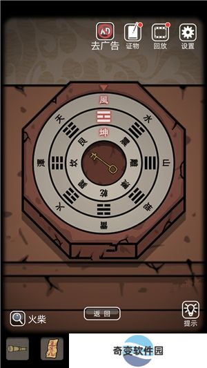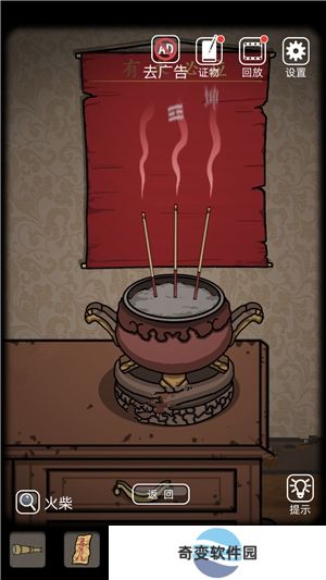 10、点击柜子上的香炉,插上三根香,使用火柴点燃,获得线索风、坤。