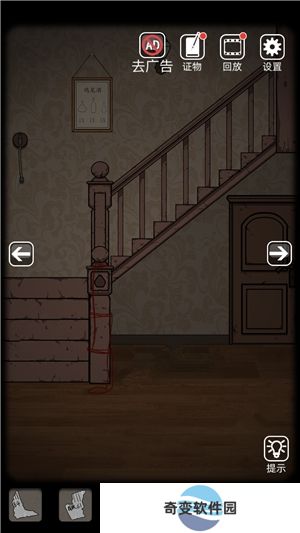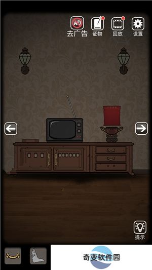 6、来到电视机场景,打开第一个柜子获得带血的刀。回到楼梯,用刀划开绳子,拿起符纸,再将大厅的灯打开,拿到鸡尾酒配方。