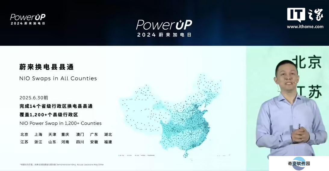 今年 8 月,蔚来创始人、董事长、CEO 李斌宣布,目标 2025 年 6 月 30 日前,完成 14 个省级行政区换电县县通,覆盖 1200+ 个县级行政区。
